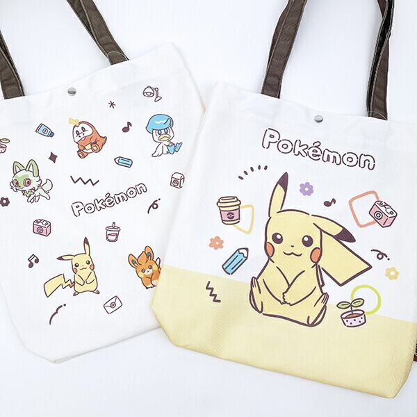 ポケモンの帆布トートバッグです。内側と外側に便利なポケット付きで普段使いにぴったり◎スナップボタンで開け閉めラクラク♪肩から掛けられるのが嬉しいポイントです☆可愛いポケモンのデザインにメロメロになっちゃうかも?【持ち手の長さ:約570mm】