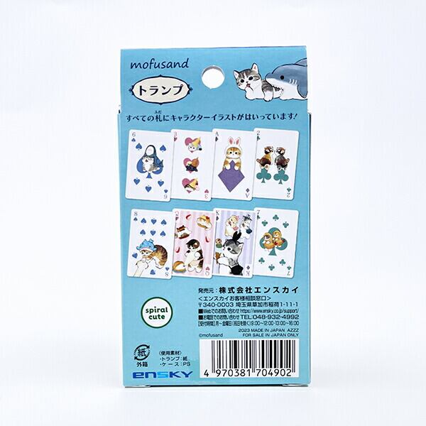 モフサンドの可愛いトランプです☆トランプの札には、可愛いモフサンドがたくさん♪眺めているだけでも楽しい、盛り沢山なトランプです☆【セット内容】数字札(4スート×各13枚)+ジョーカー2枚+予備カード2枚