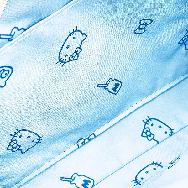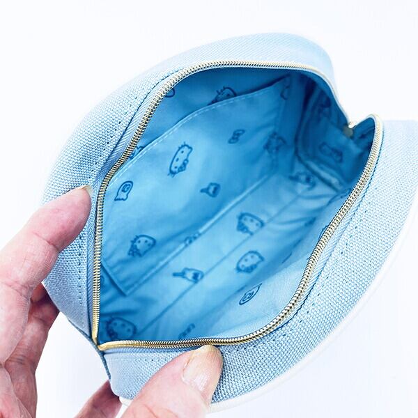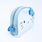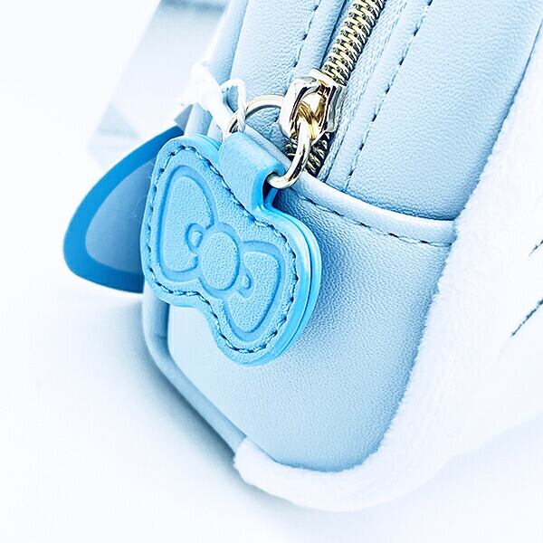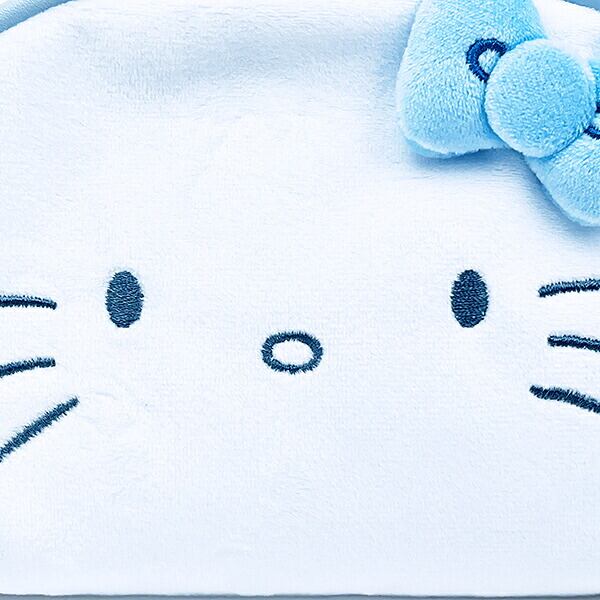 涼しげなカラーデザインで小物を入れたりコスメを入れたりできるハローキティのラウンドポーチです。立体的なリボンとふわふわな手触り抜群◎文具を入れてもgood!