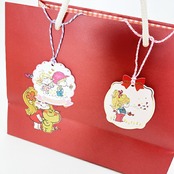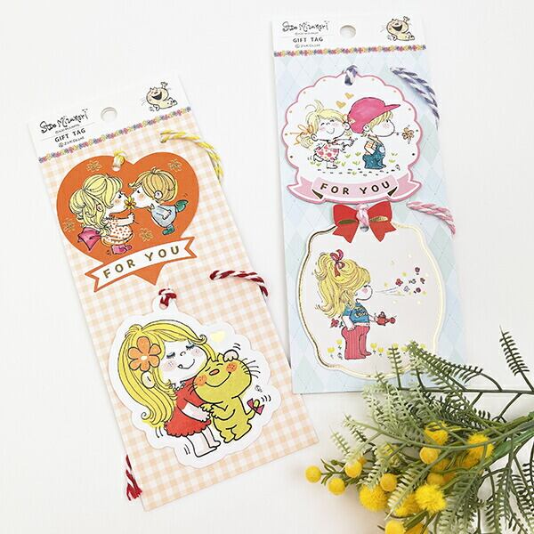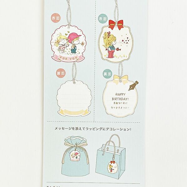 どこか懐かしさを感じる水森亜土のイラストが型抜きされた2種類のタグです。約14cmの紐が付いているのでプレゼントのアクセントとして使用できます。裏にはメッセージが書けます。※こちらの商品でのラッピング対応およびこちらの商品へのメッセージの代筆は行っておりません。予めご了承くださいませ※