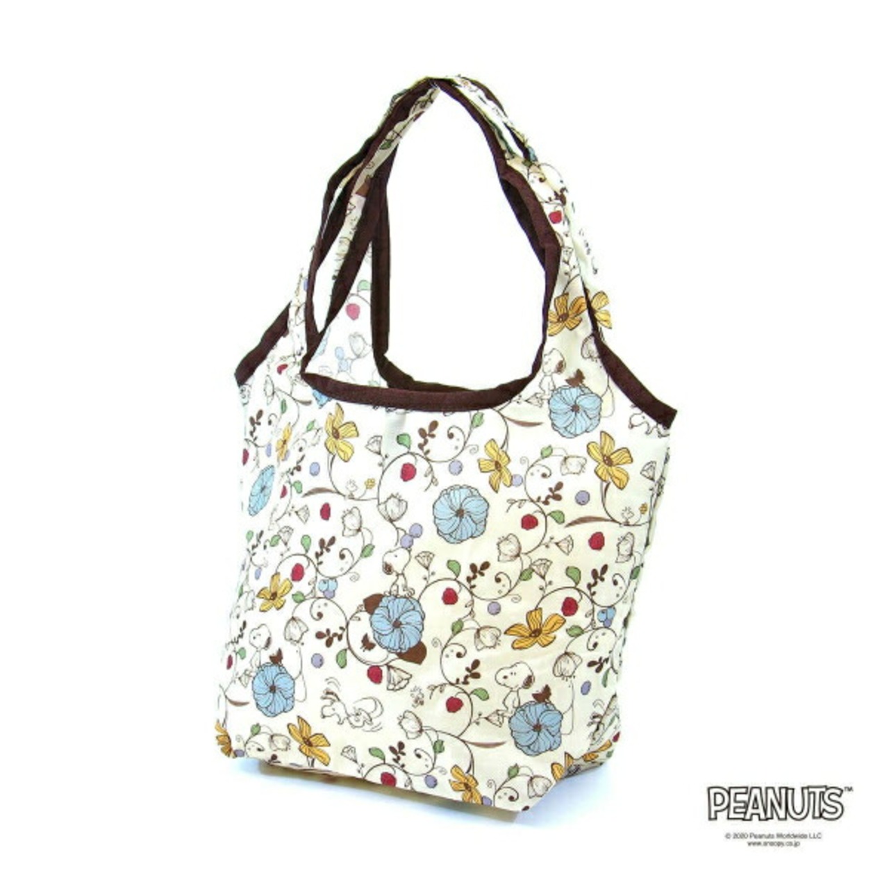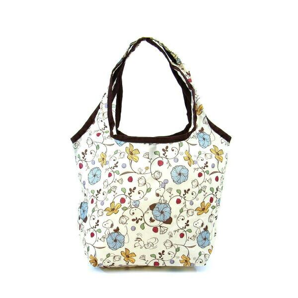 スヌーピー ウッドストック 折りたたみエコバッグS (フラワーベージュ)