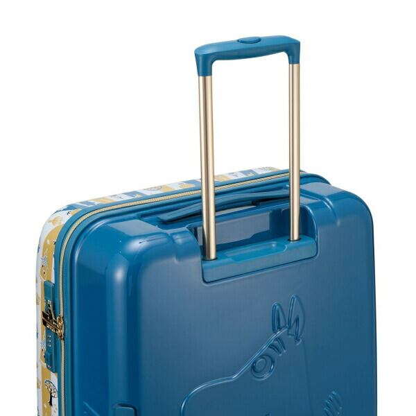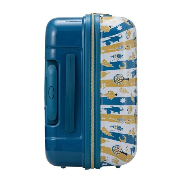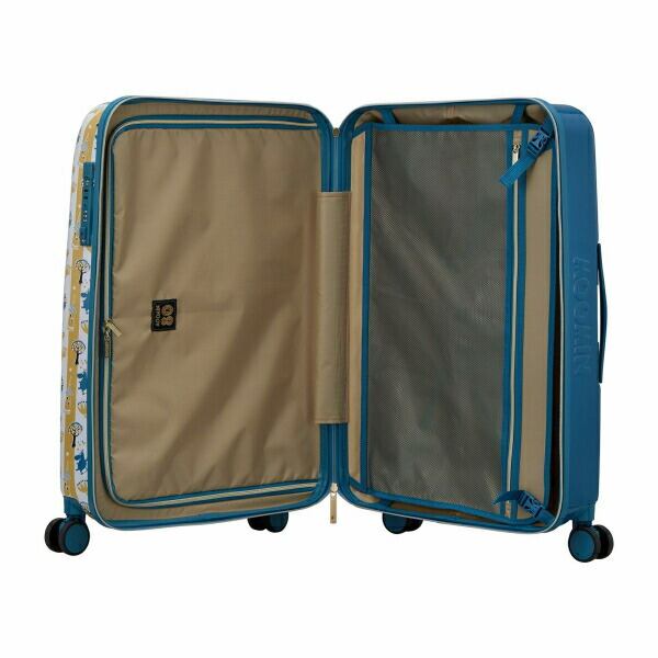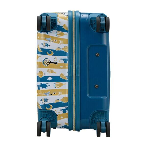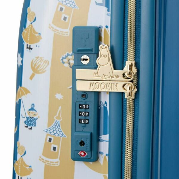 2025 年、『ムーミン』の小説が誕生して80周年を記念した特別アートのシリーズ。ムーミン80周年ロゴデザインの内装の刺繍ネームが付いています。スーツケース前面はブルーストライプにムーミンやリトルミイ、ムーミンやしきのイラストが散りばめられたデザインです。背面にはムーミンの後ろ姿がエンボス加工でデザインされています。ロックのファスナートップはムーミンの形をしています。内装は片側がファスナーで閉じることができ、もう片側には間仕切りとクロスベルトが付いているので荷崩れを防いで収納することが可能です。キャスターは安定した走行性を発揮する双輪キャスターで、凸凹道でも衝撃吸収するサスペンションも付いています。ロックはシフレロック(2wayダイヤル&キー)で、鍵でもダイヤルでも開閉可能。さらにアメリカ方面への旅行でも安心のTSAロック付きです。【内寸:約H66×W45×D27cm】【重量:約4.2kg】【容量:約81L(宿泊目安:約5〜7泊)】
