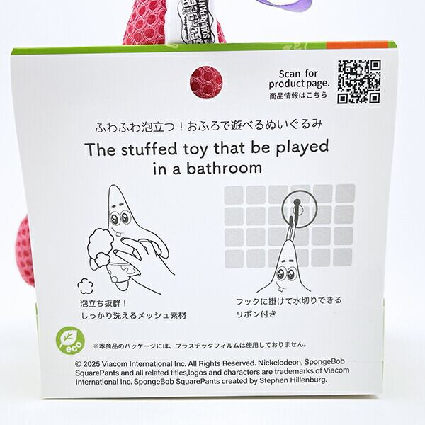 メッシュ素材で泡立ち抜群!ボディスポンジとしてもご使用できるお風呂で遊べるパトリックのぬいぐるみです。錆びないプラ製の鈴が入っているので、身体を洗う度に軽やかな鈴音が鳴りお子様も喜ぶこと間違いなし!ぜひパトリックと一緒にお風呂時間をもっと楽しくしましょう♪