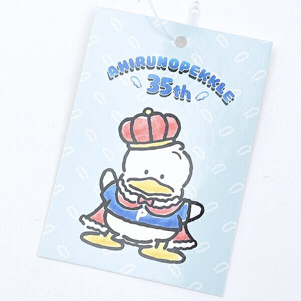 あひるのペックル35周年を記念したデザインのフラットポーチです。王冠をかぶって、マントを羽織っている姿がとってもキュート♪いろんな姿のペックルもいて、ペックル好きにはたまりません!バッグに入れておくだけで可愛いので、もうバッグの中で迷子にならずに便利☆メイク用品や小物の収納にぴったりです♪周年のお祝いにぜひいかがですか?