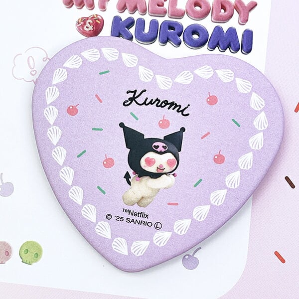 Netflixオリジナルアニメ「My Melody&Kuromi」デザインシリーズのハート型缶バッジ3個セットです。いつもと違うマイメロディ&クロミが楽しめちゃいます♪ハート型がとってもキュートなのでバッグなどに付ければ可愛さもMAX☆今話題のアニメシリーズなのでぜひ記念にいかがですか?