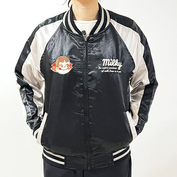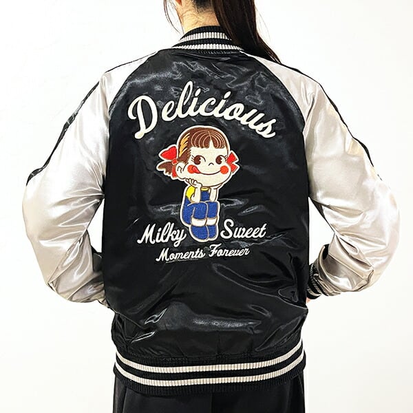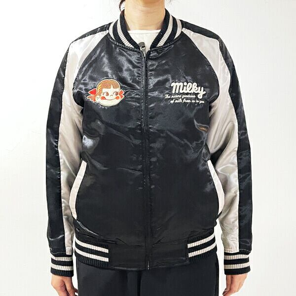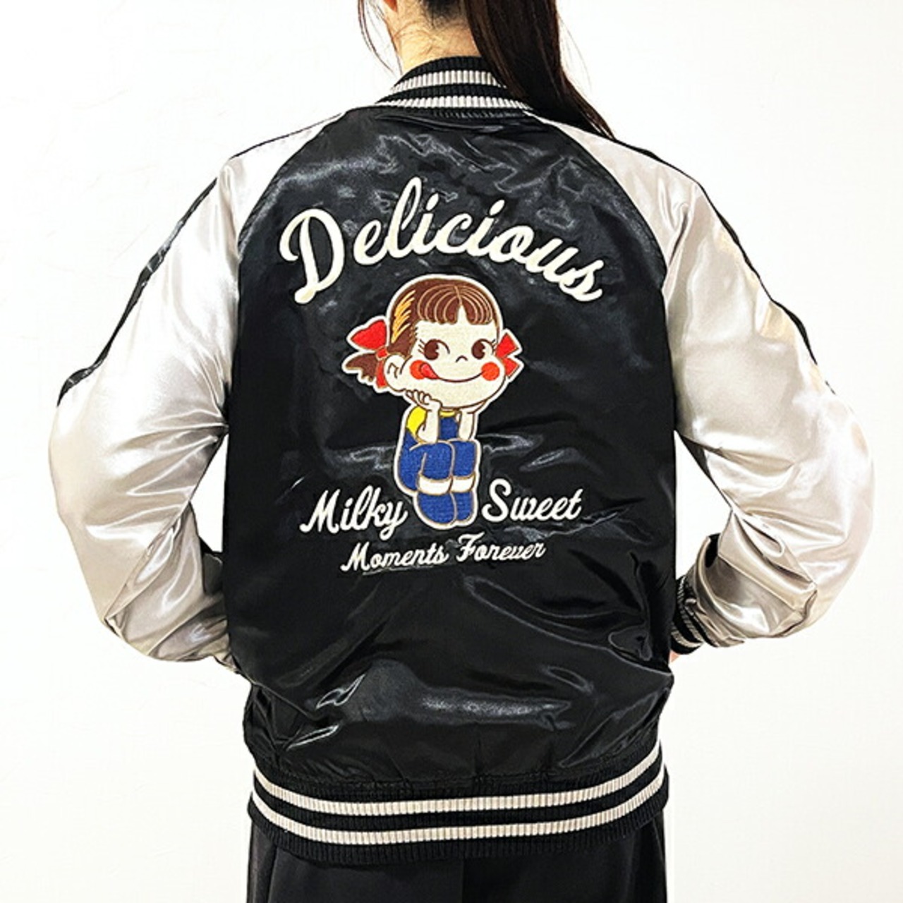 ペコちゃん 刺繍スカジャン(L) ブラック×シルバー ブルゾン アパレル