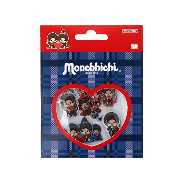 モンチッチ 青チェック ぷっくりシール 文具