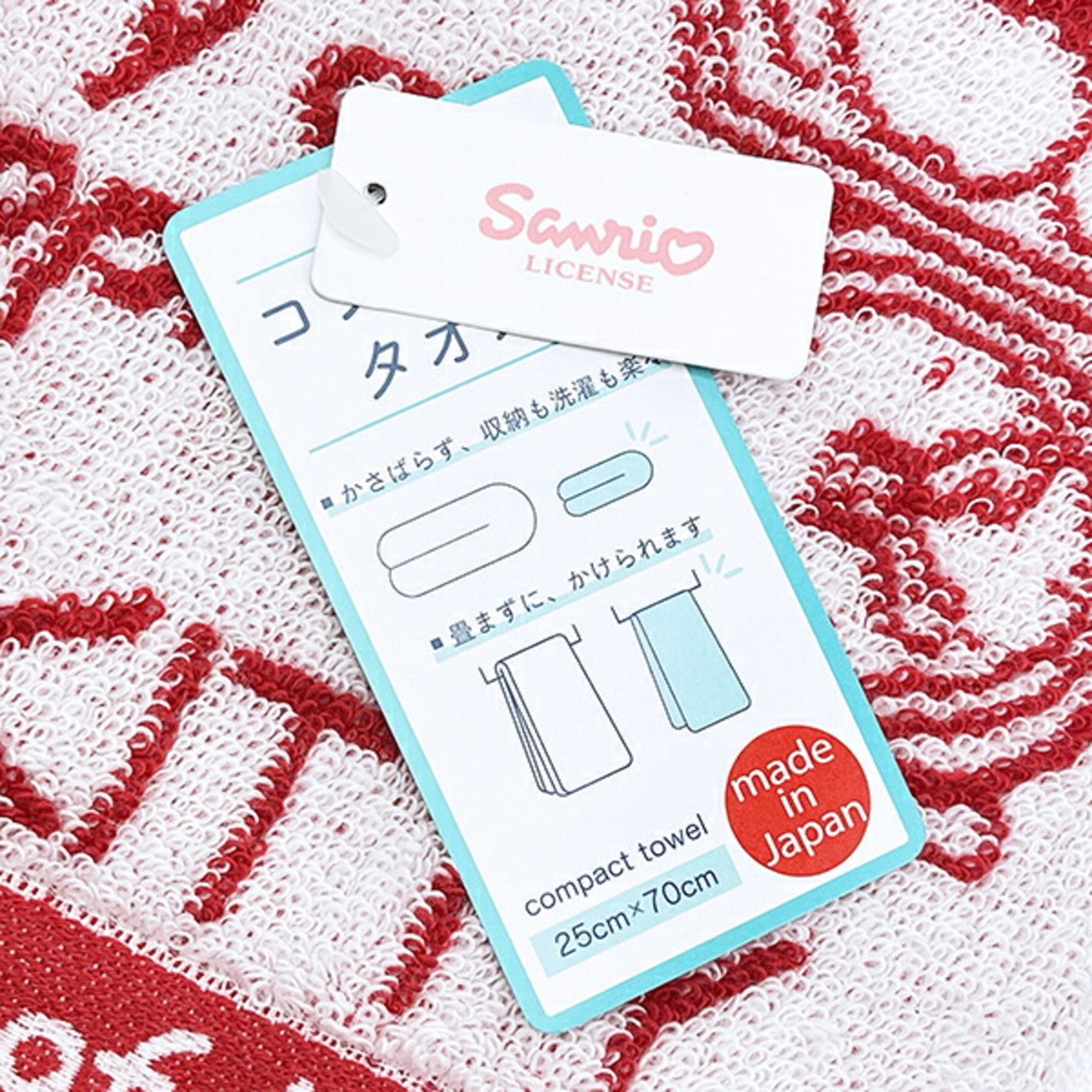 シナモロールのコンパクトタオルです♪通常のフェイスタオルよりも一回り小さいコンパクトサイズなので、持ち歩きにも便利でかさばらず、収納も洗濯も楽々♪ふわふわとりたソフトな風合いに優れた吸水性、毛羽も少ないので快適にお使いいただけます☆