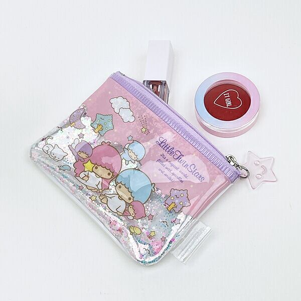 かわいいアクリルチャーム付きのリトルツインスターズのミニポーチです♪バッグのなかの小物整理にも便利なミニサイズ!