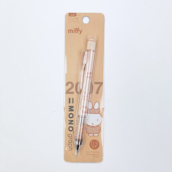 ミッフィーの回転くり出し式の「MONO消しゴム」を搭載したシャープペンシルです。ミッフィーは誕生70周年!年代別のミッフィーがそれぞれワンポイントに♪ミッフィーらしいシンプルなデザインで大人可愛いカラーリングなので、年代問わず持ちやすい☆お勉強やお仕事のお供に◎【芯径:0.5mm】
