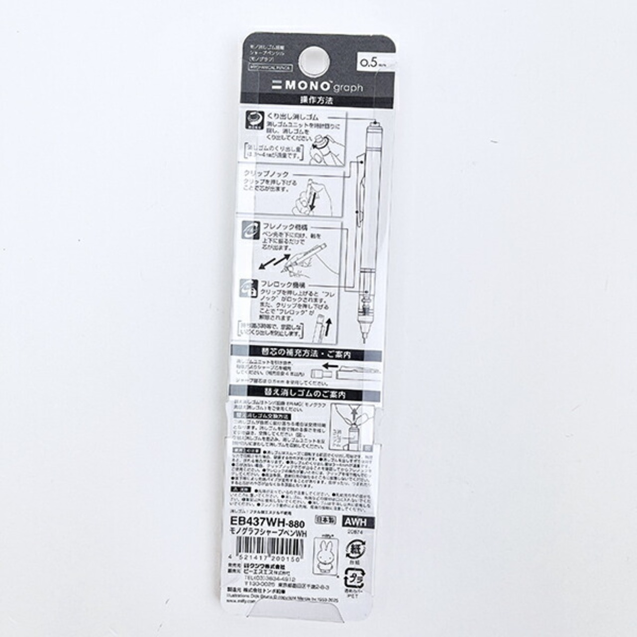 ミッフィーの回転くり出し式の「MONO消しゴム」を搭載したシャープペンシルです。ミッフィーは誕生70周年!年代別のミッフィーがそれぞれワンポイントに♪ミッフィーらしいシンプルなデザインで大人可愛いカラーリングなので、年代問わず持ちやすい☆お勉強やお仕事のお供に◎【芯径:0.5mm】