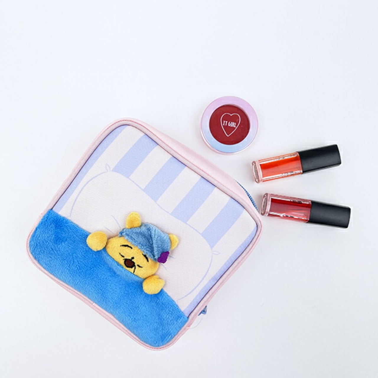 おしりもかわいいし、寝ている姿もどちらもかわいい!プーさんのぬいぐるみがついた立体的なポーチ♪使いやすいスクエア形もポイントです!☆
