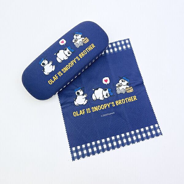 スヌーピーのきょうだい、オラフのメガネケースです♪ネイビーチェックのシンプルデザイン♪ほのぼのしたオラフが、とっても可愛い♪メガネ拭きも同柄で付いています♪同シリーズで集めたくなっちゃう☆彡