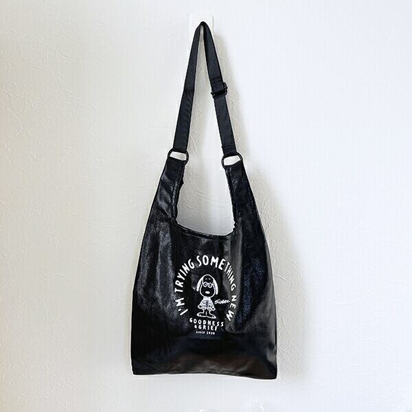 薄手で軽い、クラック調のメタリック素材を使用したスヌーピーのショルダーバッグです。ブラックには赤の裏地を合わせて、遊び心をプラス♪ショッパー型デザインが可愛い☆長財布、スマホ、ボトル、A5ノート、ポーチなどが収まります。トートバッグ&ショルダーバッグの2way仕様で使い勝手◎ショルダーベルトは取り外し・長さ調整が可能なので手持ち・肩掛け・斜め掛けとシーンに合わせて使えます☆内側には小物の整理に便利な吊りポケット付き、背面にはスマホなど出し入れが多いアイテムの収納に便利なルーポケット付きが嬉しいポイント☆PEANUTS75周年を記念する織りネーム付き。毎日のお出かけをもっと楽しくできちゃう大人の「スヌーピー」デザインのルートートです☆彡【サイズ】平置き時:W26.5×H(中央部分)29(持ち手込)42×D11cm【ショルダー:最長約85cm】