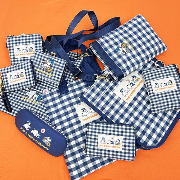 スヌーピーのきょうだい、オラフのパスポーチです♪ネイビーチェックのシンプルデザイン♪ほのぼのしたオラフが、とっても可愛い♪外側とポーチの中にもにリールが付いているため、バッグに付けて鍵もサッと取り出せる◎同シリーズで集めたくなっちゃう☆彡