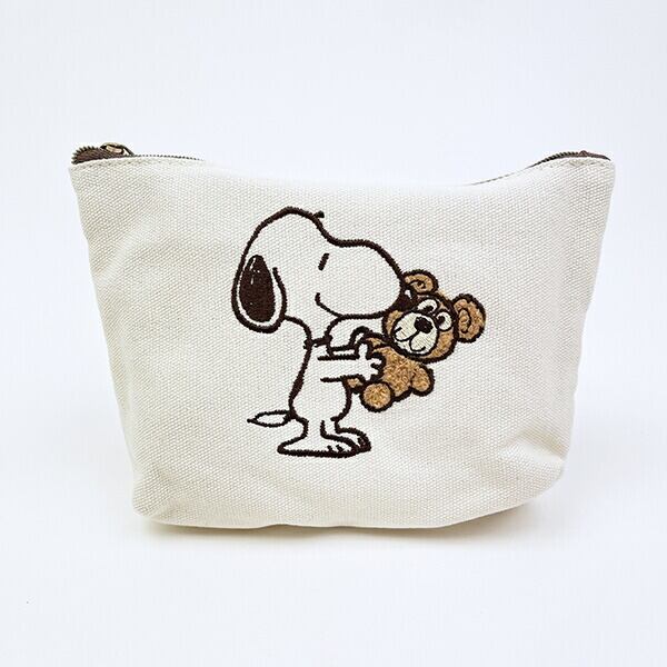 スヌーピーの化粧ポーチです♪サガラ刺しゅうのベアがとっても可愛い♪ナチュラルカラーで飽きがこないデザイン♪内ポケットもあるのでとっても便利☆彡