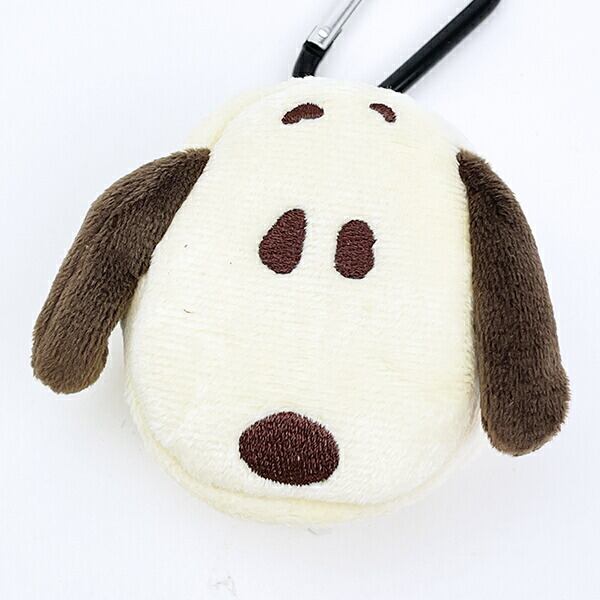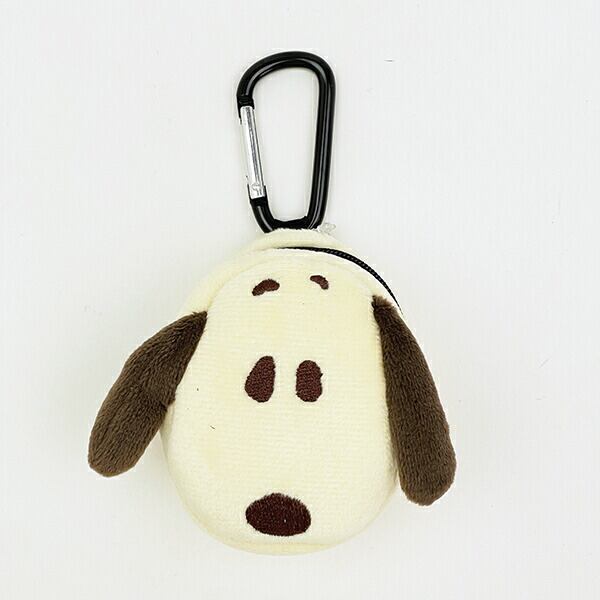 スヌーピーのカラビナミニポーチです♪愛されスヌーピーフェイスのナチュラルカラーデザイン♪触り心地も◎カラビナが付いているので、バッグに付けて目薬や小銭を入れるのにとっても便利☆彡