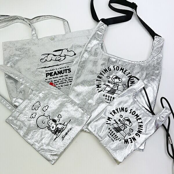 薄手で軽い、クラック調のメタリック素材を使用したスヌーピーのトートバッグです。トレンドのシルバーカラーで遊び心をプラス♪A4がぴったり収まる横長サイズで使い勝手◎長めのハンドルなのでスマートに肩掛けできるのでオトナのレッスンバッグとしてもgood♪内側には2口のオープンポケット付き、裏面には、スマホサイズのルーポケット付きが嬉しいポイント☆PEANUTS75周年を記念する織りネーム付き。毎日のお出かけをもっと楽しくできちゃう大人の「スヌーピー」デザインのルートートです☆彡【サイズ】サイズ:W(上部)38(下部)33×H24.5×D5.5cm【持ち手:65cm】