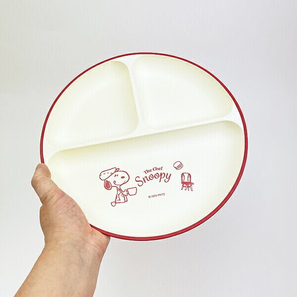 スヌーピーの抗菌ランチプレートです♪落ち着いたカラーでいつもの食卓が、カフェ風でおしゃれに♪仕切りが付いているので盛り付けも◎軽くて割れにくい素材で、小さなお子様から年配の方まで安心して使えます☆彡食洗機・電子レンジ使用可◎