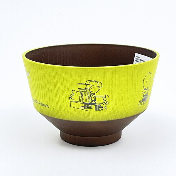 スヌーピーの汁椀です♪温かみのある木目調が特徴で軽くて割れにくい、上品な樹脂食器。小さなお子様から年配の方まで安心して使えます。食洗機・電子レンジ使用可◎