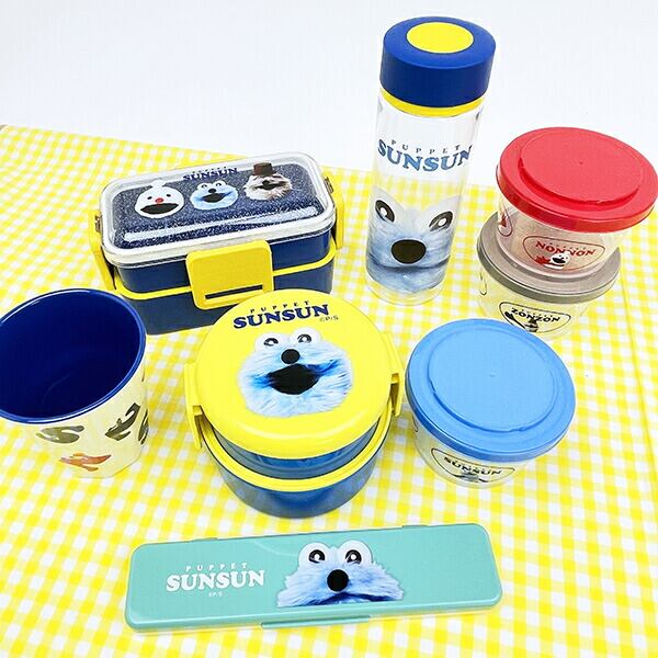 パペットスンスン 丸型ランチボックス2段(フォーク付き) 日本製