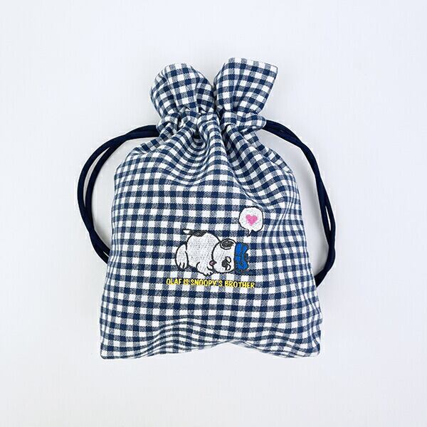 スヌーピーのきょうだい、オラフの巾着です♪ネイビーチェックのシンプルデザイン♪ほのぼのしたオラフが刺しゅうされていて、とっても可愛い♪同シリーズで集めたくなっちゃう☆彡