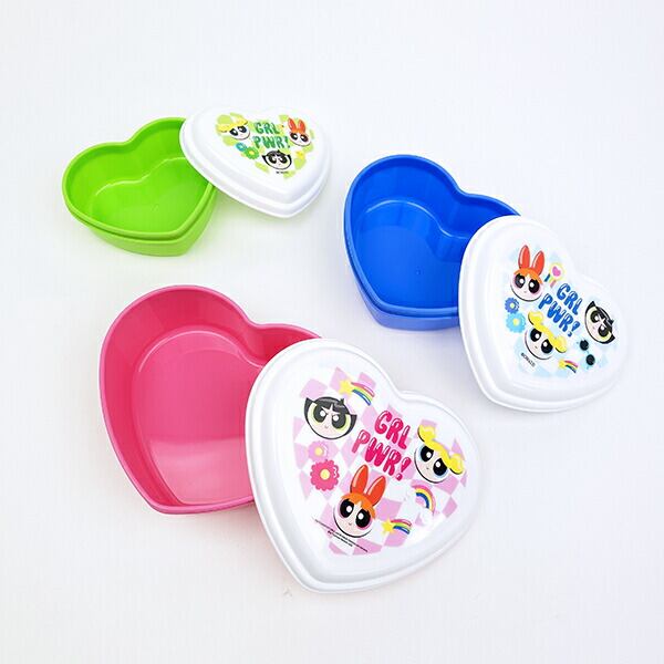 パワーパフガールズのハート型シール容器3点セットです。ドーム型のフタで、"ふんわり"とご飯やおかずを盛りつけておいしさUP♪ご飯やおかず、デザートなどを入れて、ランチにも持って行けちゃう便利な容器☆食べ終わった後は入れ子式にできるので収納できてコンパクトになって持ち帰りも楽々♪余ったおかずや薬味などの保存にもぴったり◎小物入れとしても使えちゃいます♪ハート型でとっても可愛いのでランチタイムも楽しくなっちゃうこと間違いなしです☆彡【容量:Lサイズ:560ml、Mサイズ:300ml、Sサイズ:190ml】【サイズ】Lサイズ:127×150×62mm、Mサイズ:110×130×54mm、Sサイズ:90×108×47mm