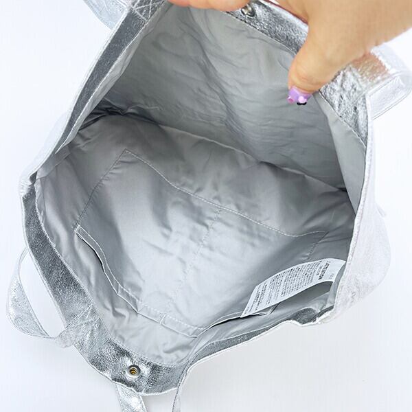 薄手で軽い、クラック調のメタリック素材を使用したスヌーピーのトートバッグです。トレンドのシルバーカラーで遊び心をプラス♪A4がぴったり収まる横長サイズで使い勝手◎長めのハンドルなのでスマートに肩掛けできるのでオトナのレッスンバッグとしてもgood♪内側には2口のオープンポケット付き、裏面には、スマホサイズのルーポケット付きが嬉しいポイント☆PEANUTS75周年を記念する織りネーム付き。毎日のお出かけをもっと楽しくできちゃう大人の「スヌーピー」デザインのルートートです☆彡【サイズ】サイズ:W(上部)38(下部)33×H24.5×D5.5cm【持ち手:65cm】
