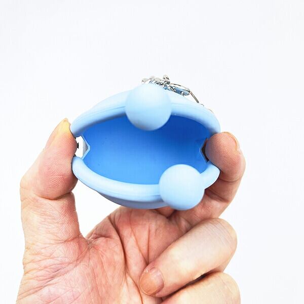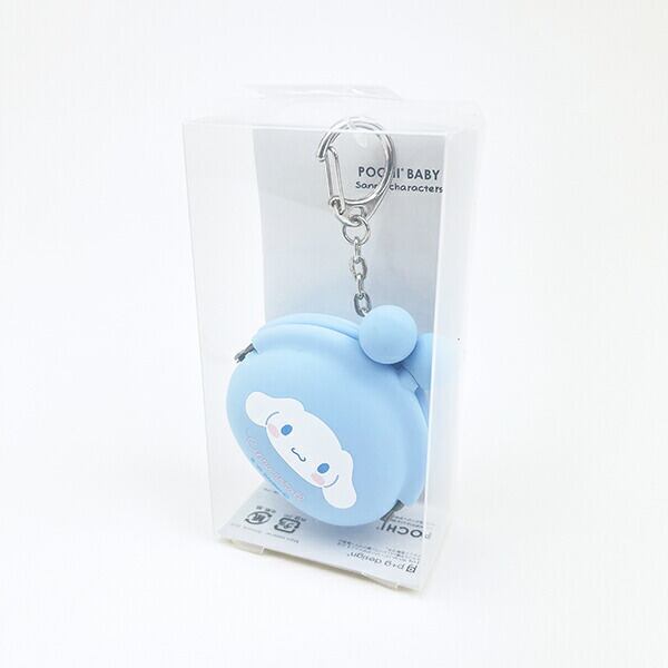 シナモロールのキーリング付きの小さいシリコンがまぐちポーチ(ポチベビーシリーズ)♪小銭やおやつを入れて、バッグや鍵につけて一緒におでかけするのも◎目印アクセサリーにして自分の身の回りのアイテムをカスタムしちゃいましょう☆
