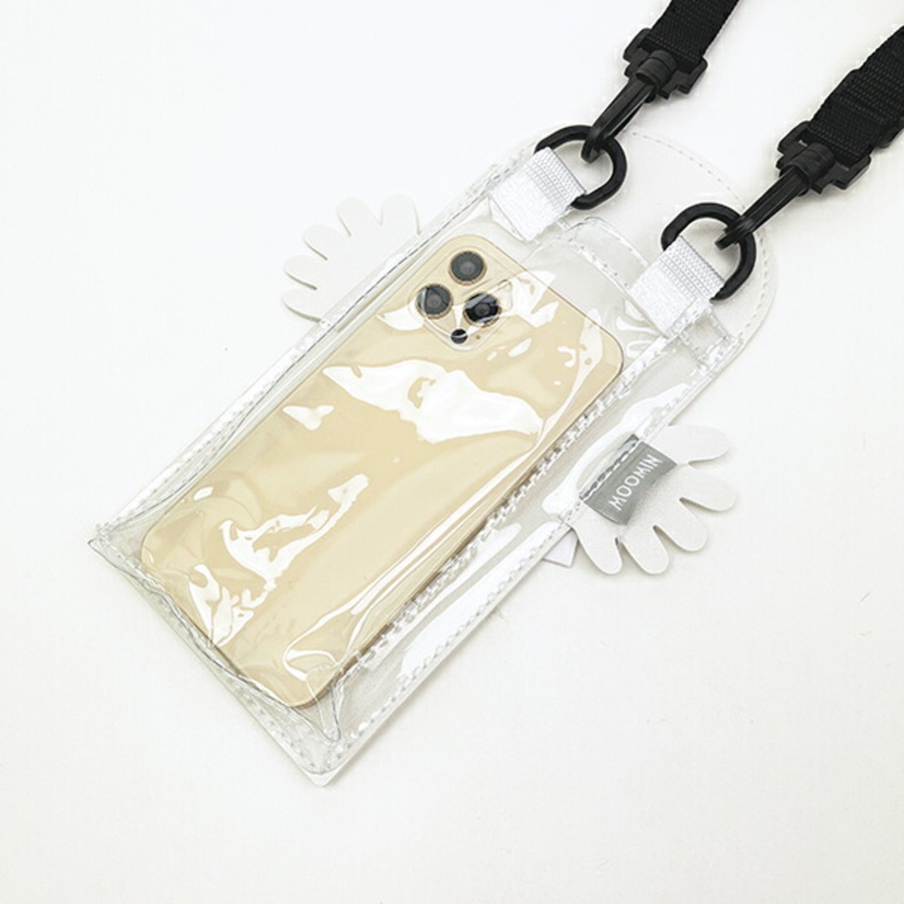 ムーミンのニョロニョロ、スマホショルダーです♪ダイカットのニョロニョロがかわいい♪スマホを入れたまま操作できて、顔認証にも対応◎ショルダーは長さ調整が可能です♪6.9インチまでのスマホが入るので、普段使いにもおでかけにも大活躍☆彡※着用カバーの形状やサイズによっては入らない場合もございます。【カバー使用時サイズ:H18×W10×D1.5】