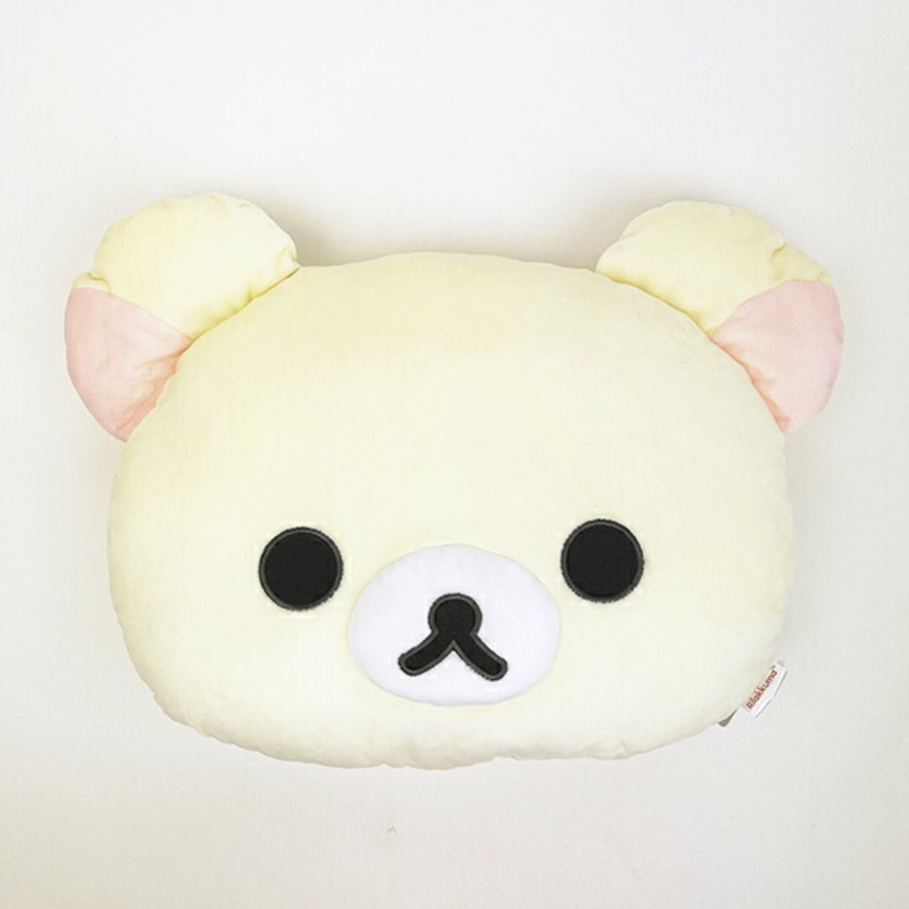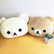 コリラックマのフェイスクッションです。もちもちな触り心地に癒されること間違いなし!ぎゅっと抱きしめられるちょうどいい大きさが◎ぜひリラックスタイムのお供いかがですか?