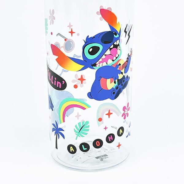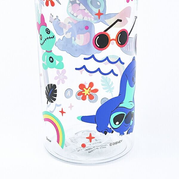 スティッチのシンプルデザインブローボトルです。中身が見えるクリアボディで軽くて使いやすい☆氷が入れやすい口広タイプ。こし器付き飲み口なので、本体にフルーツや野菜を入れてフレーバーウォーターも楽しめちゃいます♪カラフルなスティッチデザインはディズニー好きにはたまりません☆【容量:400ml】