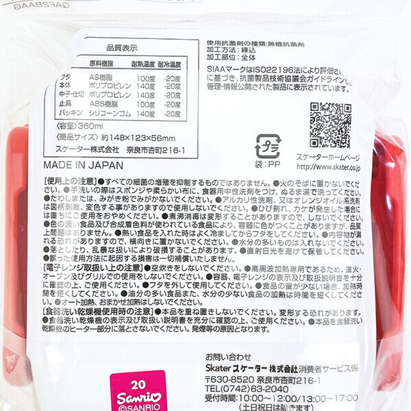 ペコちゃん×ハローキティのおかずがつぶれにくいふわっとフタタイトランチボックスです。ドーム型のフタで、"ふんわり"とご飯やおかずを盛りつけておいしさUP♪のり等がフタにくっつきにくく、押し潰れを防ぎます♪おかずが片寄りにくい高い仕切り&入れ分けに便利な中子付きで、用途に合わせて使い分けができて使い勝手◎なかよしなペコちゃん&キティちゃんのデザインが可愛すぎます☆彡食洗機・フタを外して電子レンジ使用可◎【容量:360ml】