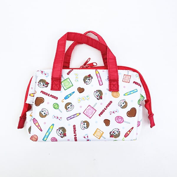 化粧ポーチみたいにおしゃれで可愛いペコちゃんの保冷ランチバッグです。内側がアルミ蒸着仕様なのでランチバッグとしてはもちろん、ちょっとしたお出かけでのサブバッグとしても◎サイフやスマホ、タオルなどを入れて普段使いにも便利!保冷剤などを入れられるメッシュポケット付きが嬉しいポイント☆お子様と公園などにお出かけする際に小さいジュースやおやつを入れるのにもぴったり♪なかよしなペコ&ポコのデザインが可愛すぎます☆彡