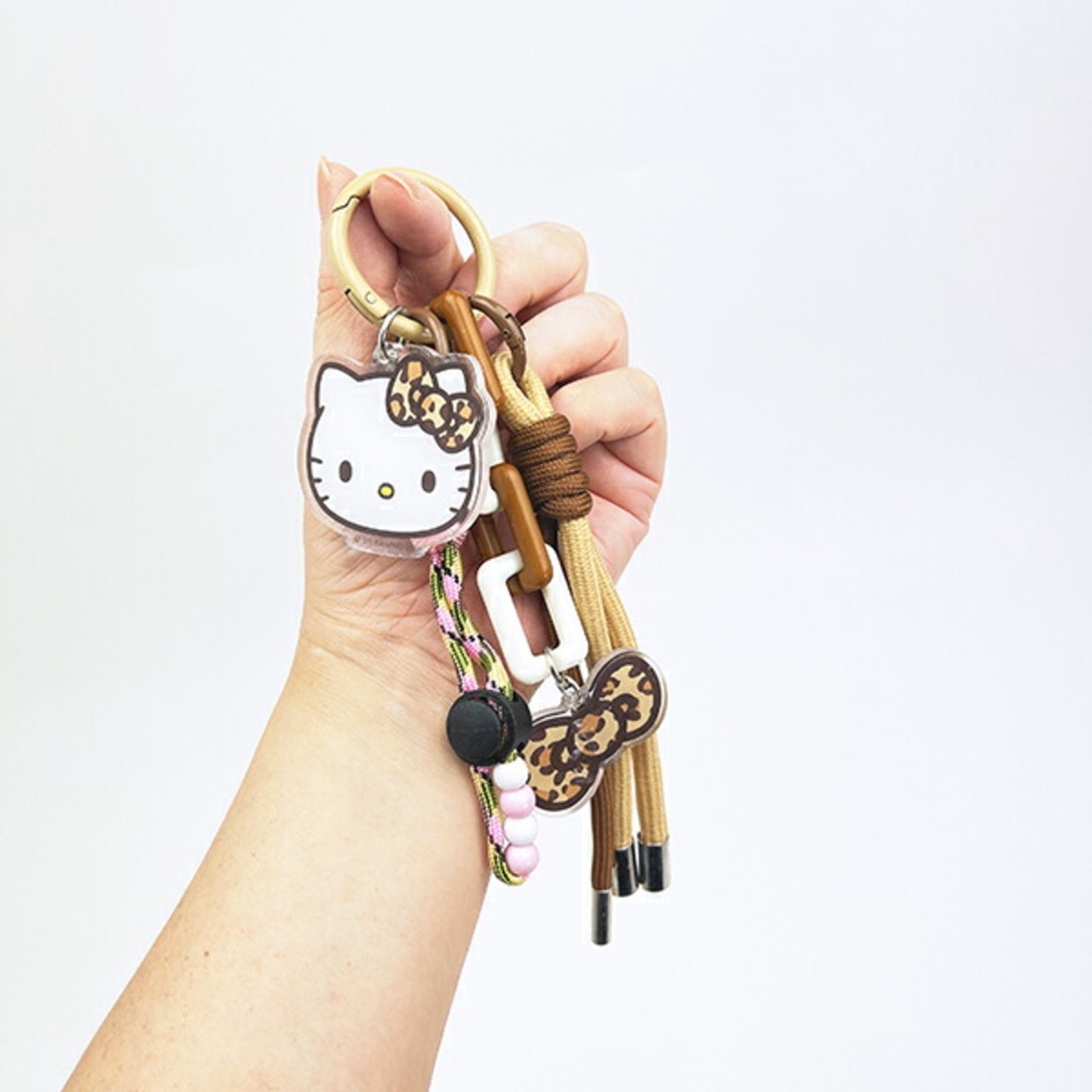 ハローキティのストラップチャームです。ヒョウ柄キティちゃんに合ったカラーのストラップがたくさんついていてバッグなどのアクセントにぴったり☆ぜひお気に入りのバッグやリュックに付けてお出かけしてみてください♪