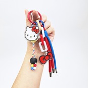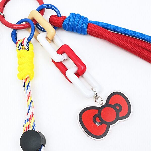 ハローキティのストラップチャームです。キティちゃんカラーのストラップがたくさんついていてバッグなどのアクセントにぴったり☆ぜひお気に入りのバッグやリュックに付けてお出かけしてみてください♪