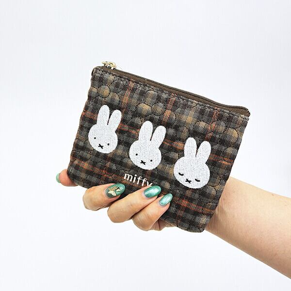ミッフィー miffy ティッシュポーチ (ブラウン) キルティングチェックシリーズ