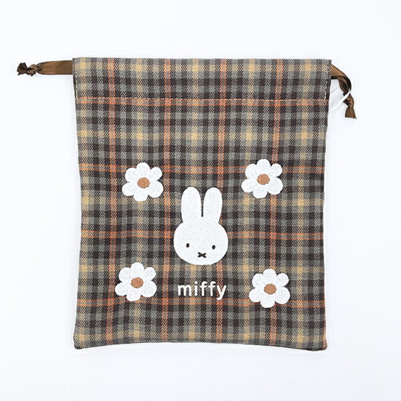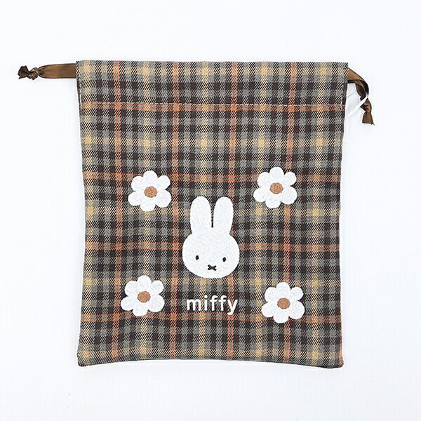 ミッフィー miffy 巾着 (ブラウン) キルティングチェックシリーズ