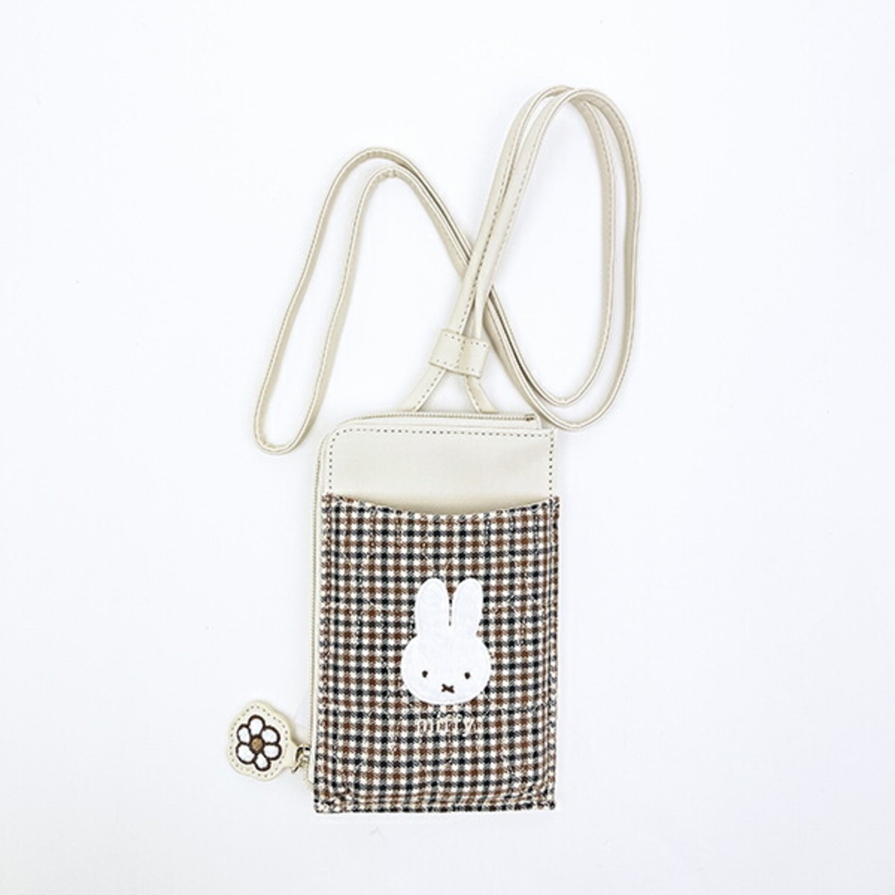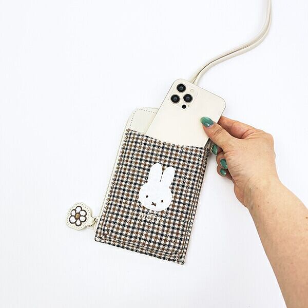 ミッフィー miffy スマホショルダーポーチ (アイボリー) キルティングチェックシリーズ