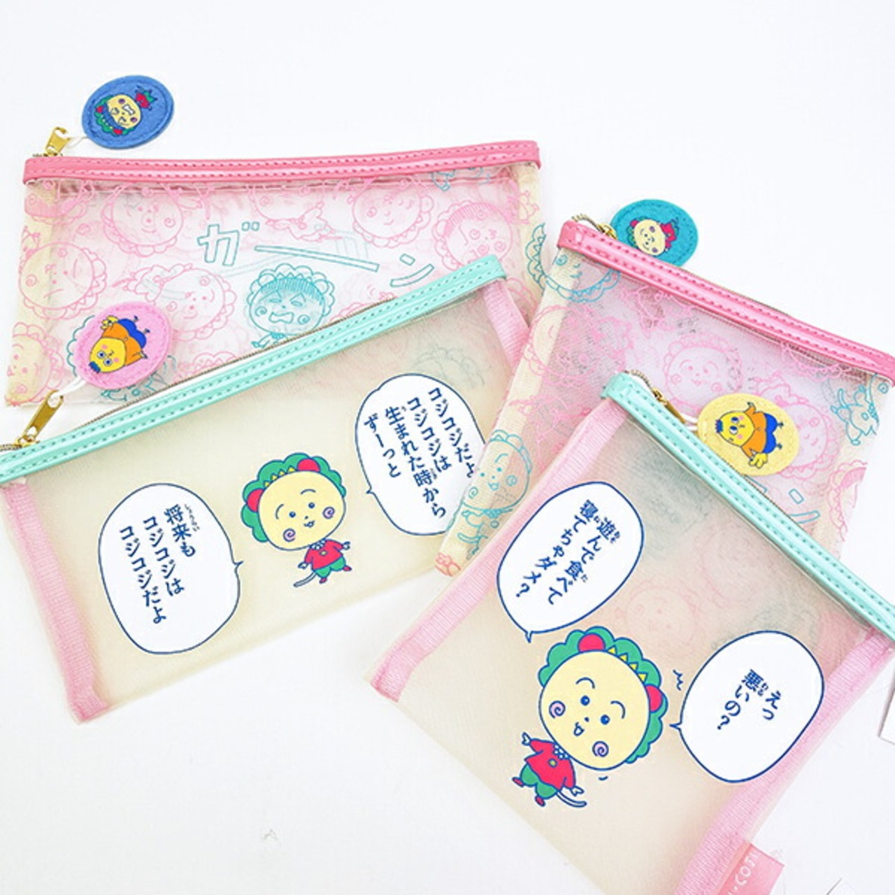コジコジのメッシュポーチです♪「遊んで食べて寝てちゃダメ?」と言っているコジコジがとってもキュート♪取っ手までコジコジワールドでカワイイ☆コスメ用品や小物の収納にぴったり♪中身が見えて取り出しやすく、使い勝手も抜群☆彡