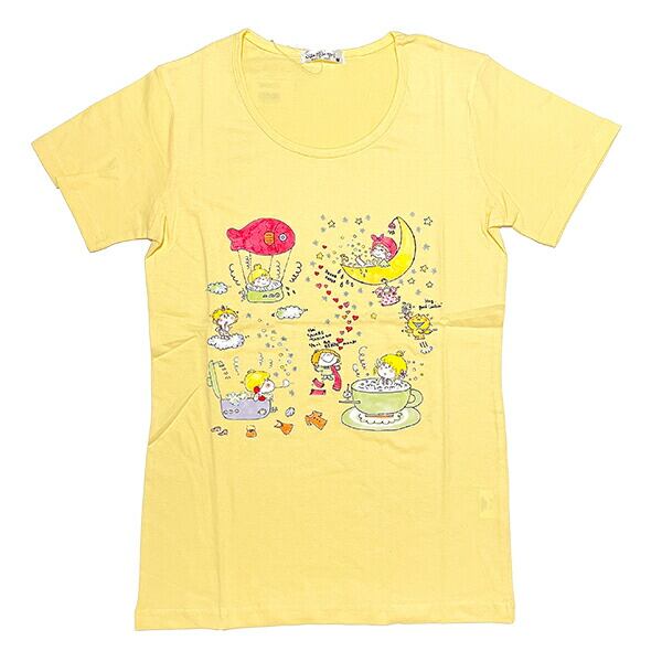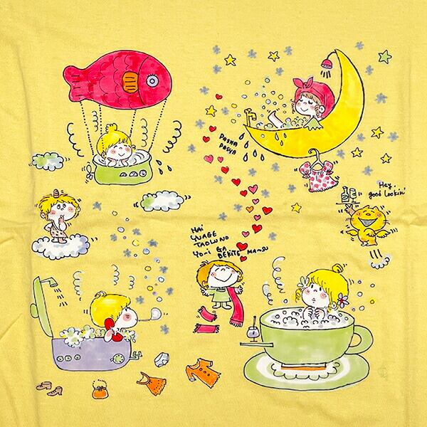 水森亜土の半袖プリントTシャツです。可愛いキャラクターたちが色んなお風呂に入っているデザインがとってもキュート☆S、M、Lのサイズ展開となりますので家族やお友達とお揃いにしやすいのが嬉しい〜♪1枚持っていれば便利に使えます☆彡【サイズ:LLサイズ(バスト:93〜101cm、身長:154〜162cm)】