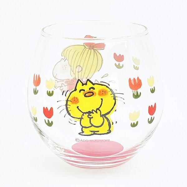 水森亜土の世界観がギュッと詰まっているデザインの丸グラスです。ジュースやお茶を入れてみるとまるでデザインが浮いているように見える♪専用の箱に入っているのでプレゼントにもおすすめです!カラー違いで男の子もございますので揃えても可愛いですよ♪