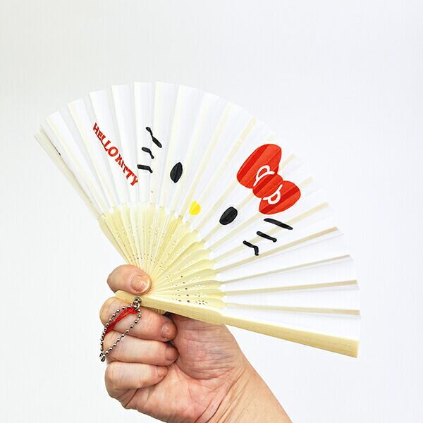 キティちゃんのカワイイ扇子です♪お祭り、イベント、花火大会、など暑い夏におすすめのアイテム!ボールチェーン付きでカバンに付けたり、お子様にも持ちやすいサイズなのでお出かけにもぴったりです!