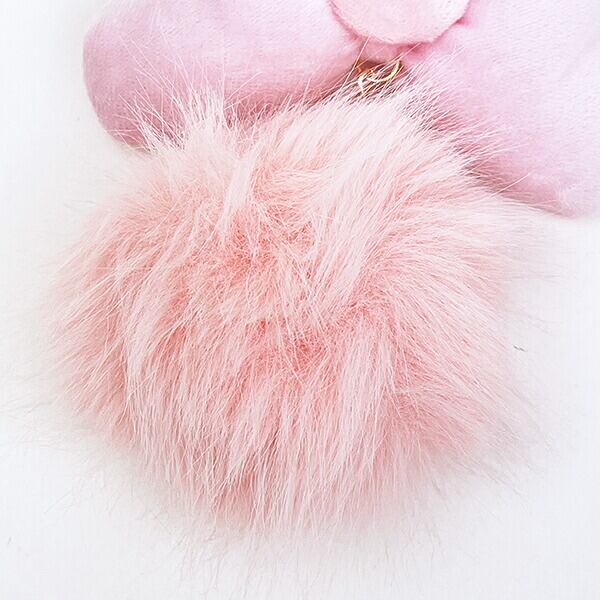 大きなリボンと丸いもこもこのファーがすごくかわいいチャーム♪カラビナ部分にキャラクターのアクリルパーツ付き☆かわいさ目立ち間違いなし♪