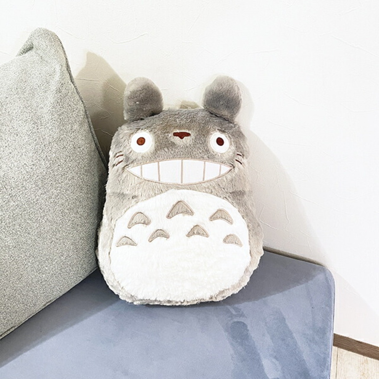 となりのトトロのダイカットクッションです。思わずギュッとしたくなる可愛さでお部屋のアクセントとしてもgood!デスクワーク中の椅子の後ろに入れて腰の負担を軽減★小さいお子様の枕としてもお使いいただけます♪