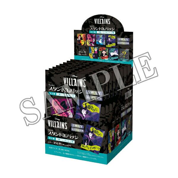 ディズニー パワーワード・ヴィランズ シークレットスタンド缶バッジ 全8種 コンプリートBOX 日本製 Disney