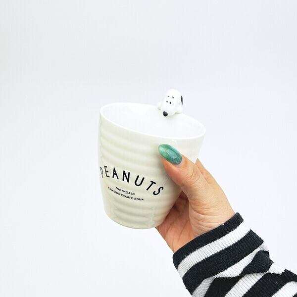 ピーナッツデザインの湯のみです。茶碗の縁にスヌーピーのフィギュアが乗っかったかわいいデザイン♪普段使いにもOK、手ごろなサイズ。同柄のお茶碗も同時発売でそろえて使ったり、プレゼントにもおすすめ★