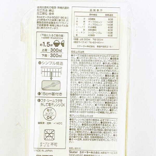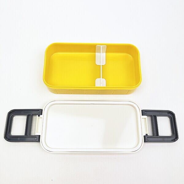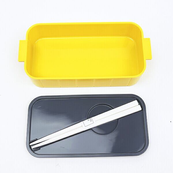 シンプルで使いやすい2段式のお弁当箱で中蓋に収納できる15cmのお箸付き、仕切り板付きと容量たっぷりめ♪食洗機・電子レンジ(フタを外せば)使用可◎【総容量:600ml(上段300ml、下段300ml)】
