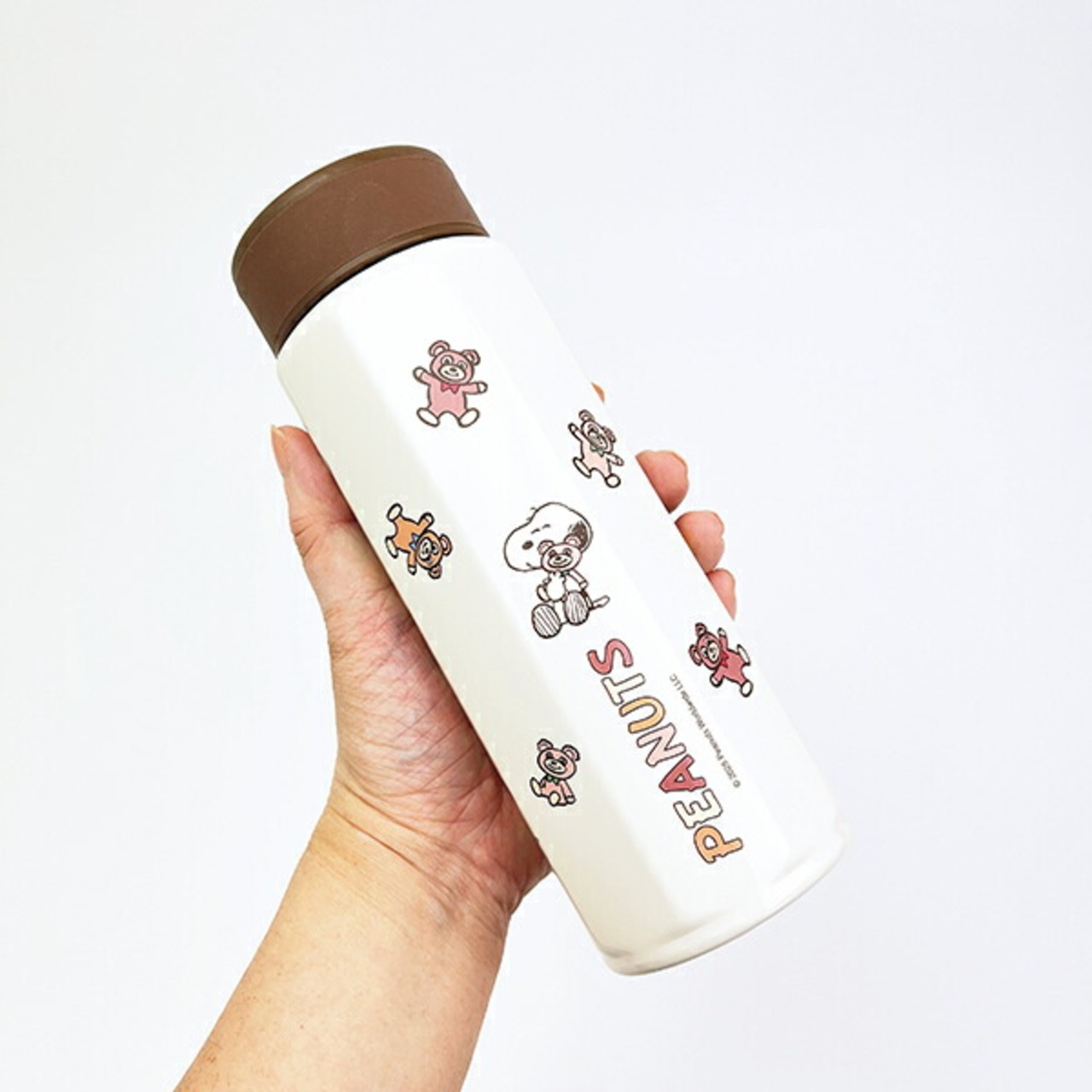 スヌーピーのマグボトルです♪落ち着いたカラーにベアをハグしているスヌーピーデザインがキュート♪真空二重構造で保温&保冷効果ありです♪氷が入れやすい広口タイプ♪冷たい、熱いで飲み口が分けられているのも嬉しい♪【容量:約500ml】