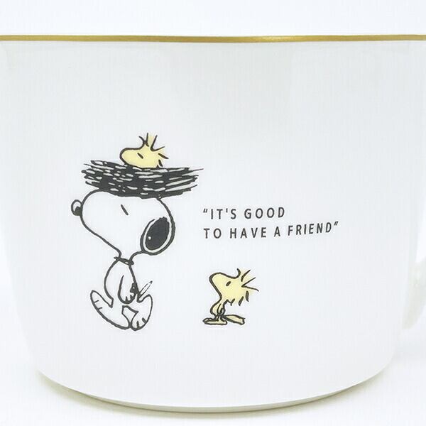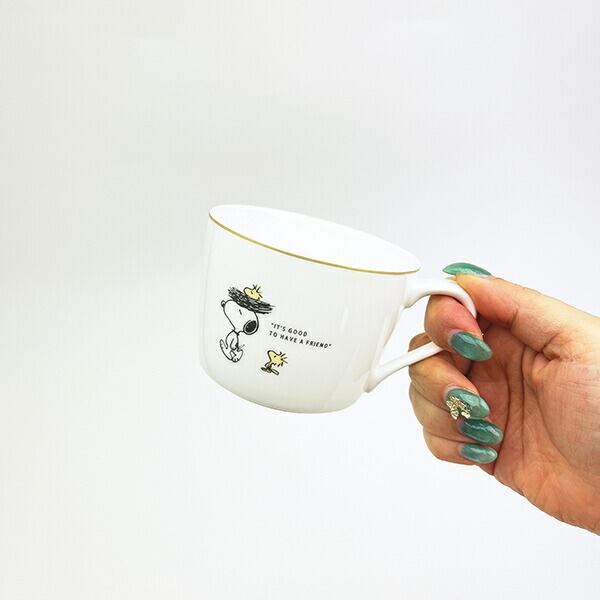 スヌーピーのボーンチャイナ製のマグカップです。永い歴史を持ち今でも世界の人々に愛されるナルミボーンチャイナの特長は、その美しさと丈夫さから王室や貴族などに重宝され、高価な陶磁器として使用されており、洗練された最高級のホテルやレストランにふさわしい特別な食器として選ばれています。料理の美しさや美味しさを最大限にひき出してくれるナルミボーンチャイナは、その造形美だけでなく、一般的な磁器と比べて強度が高く、毎日使う器としても安心して使用していただけます♪高級感があるデザインなので特別なディナーのお供にぴったり☆箱付きなのでスヌーピーの好きの方へのプレゼントにもおすすめです♪【容量:270ml】